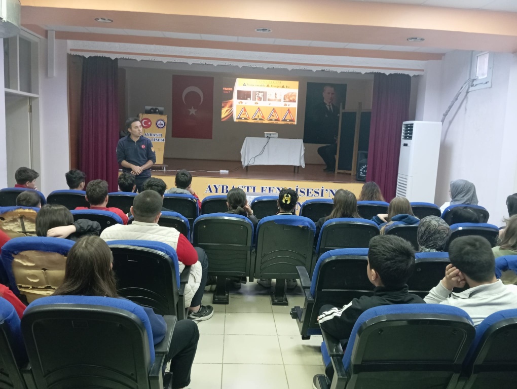 Ordu Büyükşehir Belediyesi İtfaiye Eğitim Merkezi ( OBİTEM ) tarafıdan okulumuz öğrencilerine Temel Yangın Güvenlik Eğitimi verildi. Konu hakkında öğrencilere Yangın Güvenliği ile ilgili bilgi verildi.